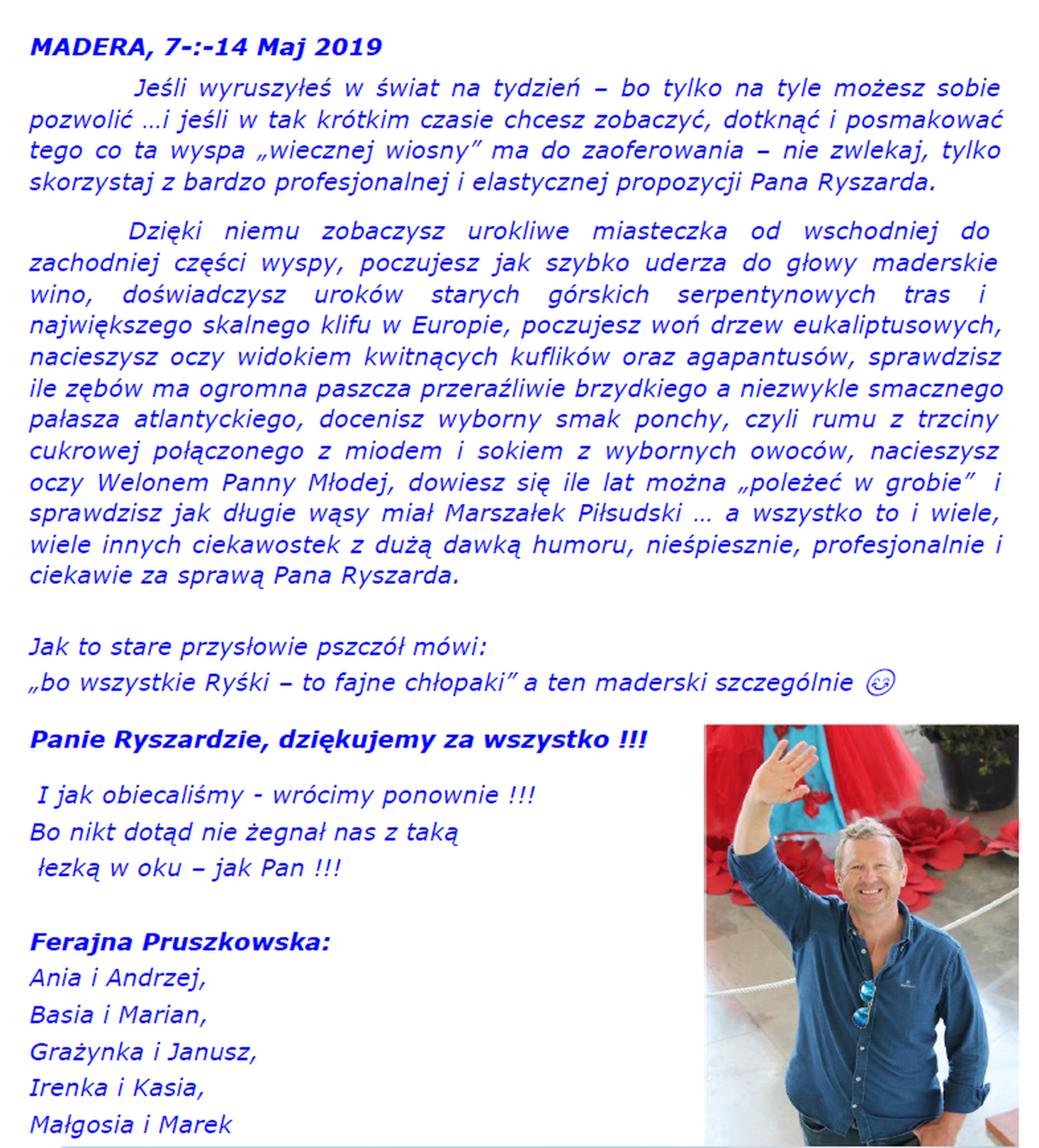 „bo wszystkie Ryśki – to fajne chłopaki” a ten maderski szczególnie 😊