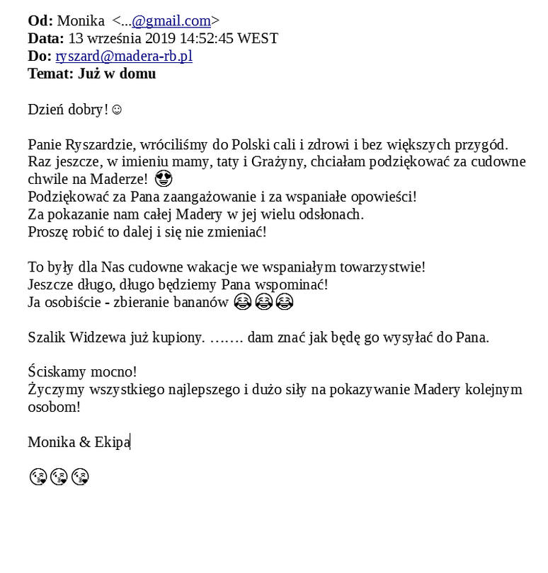 Raz jeszcze, w imieniu mamy, taty i Grażyny, chciałam podziękować za cudowne chwile na Maderze! 😍